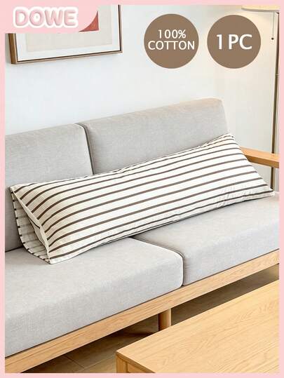 1 pieza Funda de almohada 100% algodón, con patrón de rayas, suave y cómoda, estilo sobre, adecuada para dormitorio, sala de estar, decoración de sofá