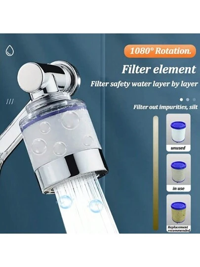 1 pieza Cabezal rociador universal con rotación de 1080° para grifos de lavabo, extensor de grifo, surtidor de burbuja, apto para grifos de cocina y baño (con cartucho de filtro), grifo del fregadero, extensor de grifo, grifo de cocina - Plateado - Añade 4