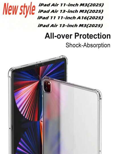 1 pieza Estuche protector de silicona suave transparente de TPU de borde completo 2025, compatible con iPad - transparente - Añade 1