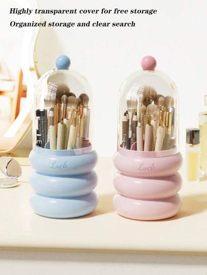 1 pieza Soporte giratorio de 360° para brochas de maquillaje, caja de almacenamiento de escritorio, recipiente cosmético a prueba de polvo y agua con tapa, para tocador y baño, taza para lápices de plástico - Multicolor - Añade 1