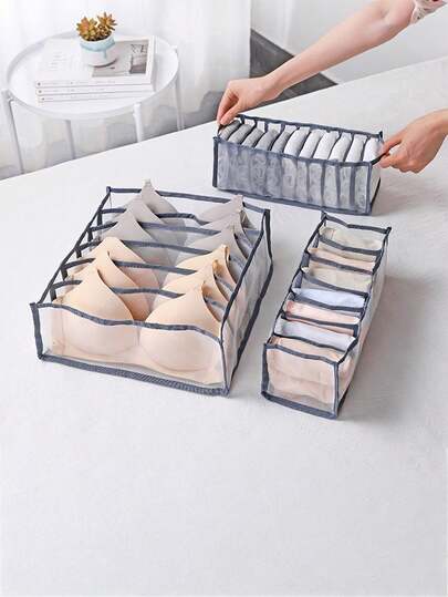 1 pieza/3 piezas Caja de almacenamiento de ropa interior, Organizador de calcetines, Divisores de cajón para sostenes y bragas, Organizador de armario, Juego esencial para el hogar de 3 piezas - Multicolor - Añade 10