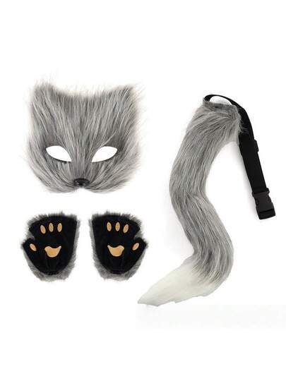 1 pieza/4 piezas Conjunto de disfraz de Halloween con máscara, guantes y cola de zorro realista, accesorio de fiesta, para todas las estaciones - Multicolor - Añade 3
