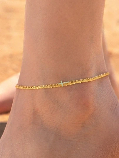1 pieza Tobillera de doble capa de plata de ley 925 con diseño de copo de nieve, diseño de nicho minimalista, versátil para ir al trabajo, citas, playa, regalo para la novia - Estilo tres - Añade 4