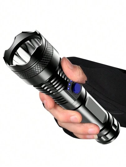 1 pieza Linterna de mano de ABS, antorcha portátil negra con carga USB, linterna recargable con indicador de carga y autonomía, resistente al agua, para camping, correr, pesca, senderismo, lectura, deportes al aire libre, accesorios de camping - Negro - Añade 1