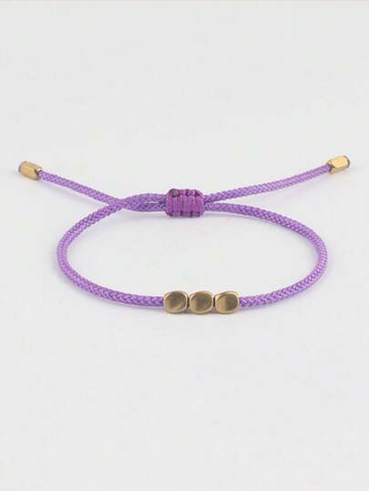 1 pieza Pulsera de hilo con cuentas de cobre ajustable, adecuada para el uso diario y festividades de las mujeres - Morado - Añade 1