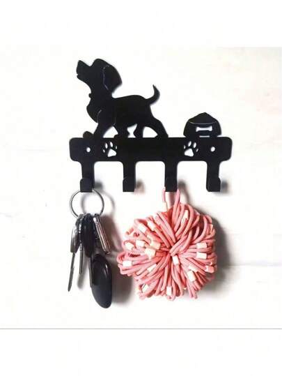 1 pieza Soporte de llaves con forma adorable de perro de metal - Organizador resistente a la oxidación para montaje en pared para llaves, toallas, etc. - Negro - Añade 4