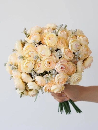 1 ramo de flores artificiales, ramo de flores de seda de peonía falsas para decoración de boda y fiesta, plantas falsas, decoración de primavera, otoño e invierno, para habitación, escritorio, jardín, decoración de habitación - Amarillo - Añade 4