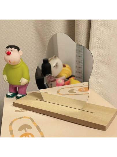 1 pieza Espejo de maquillaje acrílico sin marco con forma asimétrica de nube, apto para manualidades DIY, tocador de escritorio y dormitorio - Mini espejo con base - Añade 1