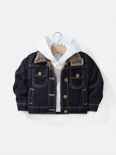 1 pieza Chaqueta de jean forrada con forro térmico para bebé niño con bolsillos con tapas - Negro - Añade 3