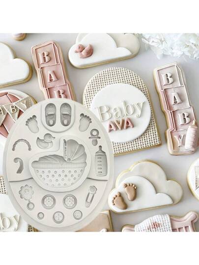 1 pieza Molde de silicona con forma de cuna de bebé, biberón de bebé, zapato de bebé y pato amarillo para decoración con arcilla - Gris Claro - Añade 9