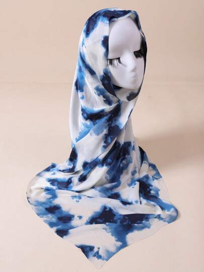 1 pieza Pañuelo/Hiyab casual de poliéster con estampado de degradado azul, para todas las temporadas - A - Añade 1