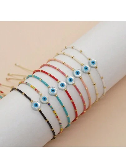 1 Pieza Pulsera Bohemia Con Diseño De Ojo De Demonio Y Conchas Con Cordón Ajustable, Adecuada Para La Moda Femenina - Multicolor - Añade 10