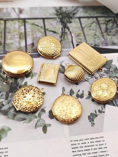 1 pieza Colgante tipo medallón con forma de corazón de acero inoxidable, estilo bohemio con diseño floral en relieve, accesorio de joyería creativo DIY para collar, regalo de San Valentín - caja de fotos de amor - Añade 7