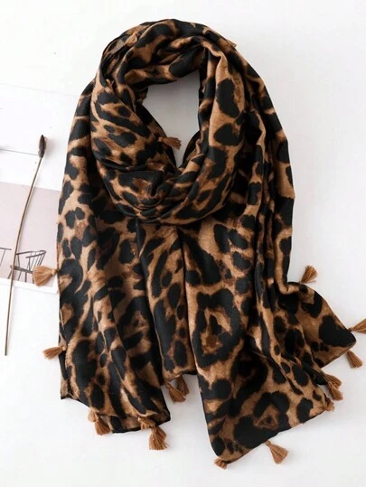 1 pieza Pañuelo con estampado de leopardo y flecos, hijab para todas las ocasiones, envoltorio bohemio para mujeres - Multicolor - Añade 1