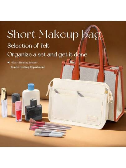 1 pieza Bolsa de lona, Bolsa de aseo, Bolsa de cosméticos, Bolsa de almacenamiento, Organizador de viaje, Bolsa, Billetera, Bolsa para teléfono, Bolsa para llaves - Beis - Añade 11