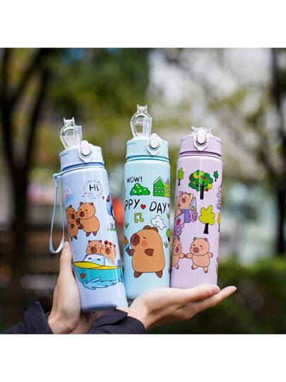 1 pieza Vaso de paja con patrón de capibara, taza de paja linda, alta visibilidad, para uso estudiantil, con cordón, taza de agua de dibujos animados portátil - Multicolor - Añade 3