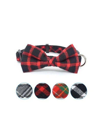 1 pieza Collar para mascota de cuadros con lazo para gatos con perros - Burdeos - Añade 7