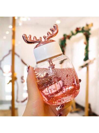 1 Pieza Botella De Agua En Miniatura De Vidrio Con Diseño De Reno De Navidad En Degradado Para Niñas - Rosa - Añade 2