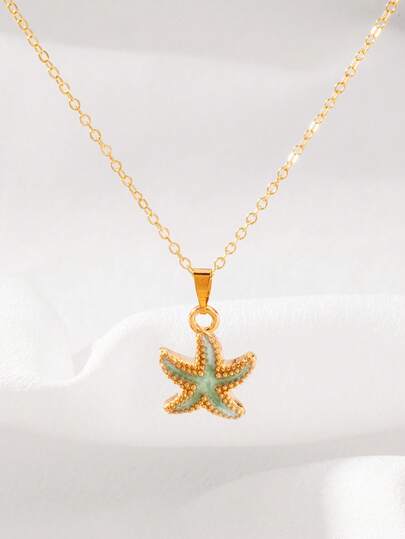 1 pieza Collar con estrella de mar y vida marina de colores, adecuado para verano, playa, viajes y fotografía, cadena de clavícula dulce y fresca - Verde claro - Añade 1