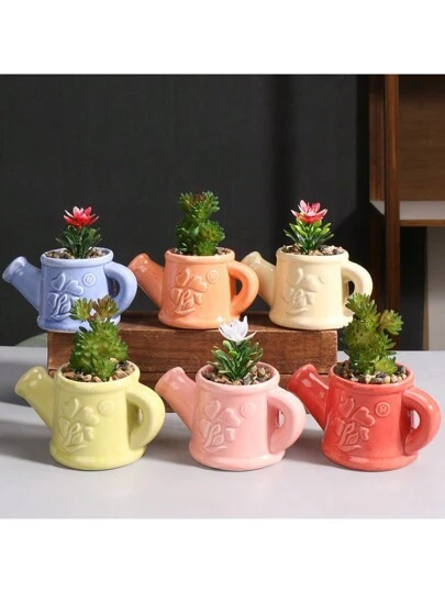 1 pieza Maceta creativa mini de cerámica para regar suculentas, decoración hecha a mano, minimalista y fresca - Multicolor - Añade 6