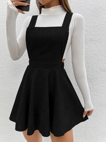 SHEIN PETITE 1 pieza Vestido overol de espalda con tira cruzada - Negro - Añade 3
