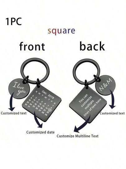 1 pieza Llavero conmemorativo de fecha personalizable, disponible en formas cuadradas, en forma de corazón y redondas, 4 lados grabables, material de acero inoxidable, regalo de cumpleaños/Día de San Valentín, llavero de pareja - Multicolor - Añade 1