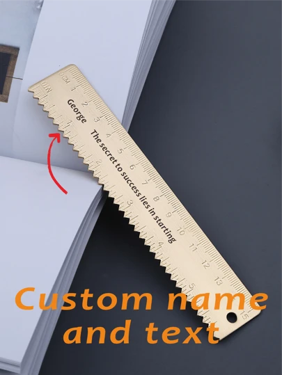 1 pieza Regla de latón con onda de 15 cm personalizable con texto y nombre, regla recta de metal vintage, material engrosado para dibujo y útiles escolares, regalo para volver al colegio - Multicolor - Añade 1