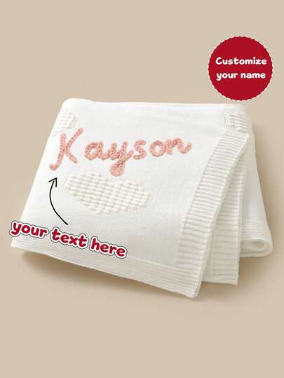 1 pieza Manta suave tejida con nombre personalizable, diseño de corazón cómodo, envoltura de caparuza para bebé, manta para niños, para todas las estaciones - Multicolor - Añade 1