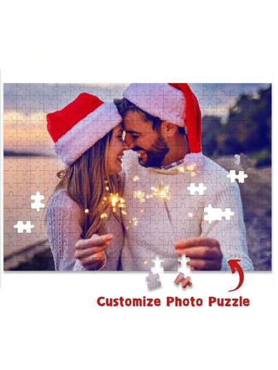 1 pieza Rompecabezas de imagen de disfraz de vacaciones personalizado, decoración navideña, rompecabezas de tema de festival divertido, registro de fiestas de Navidad, crea tu propio rompecabezas de foto de Navidad personalizado, regalo de decoración adecuado y creativo - Estilo horizontal - Añade 2
