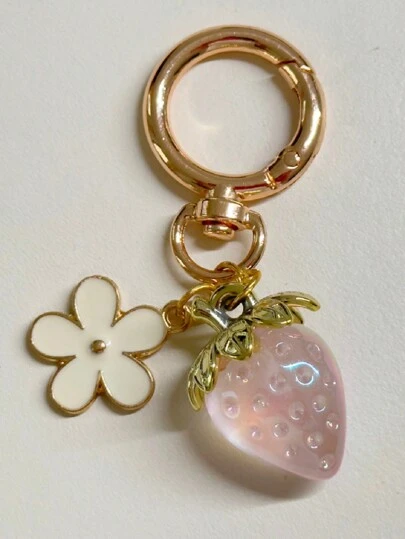 1 pieza Llavero de fresa adorable, hecho de plástico ABS, accesorio de coche o bolso - Rosa - Añade 1