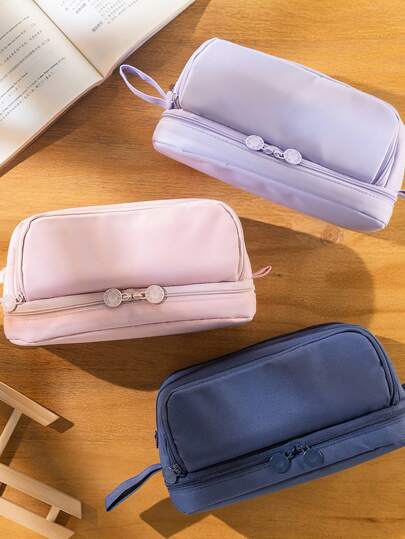 1 pieza Estuche de lápices con 4 compartimentos, apertura doble, con cremallera y asa portátil, organizador de almacenamiento para artículos de papelería y escuela - Talla única - Añade 2
