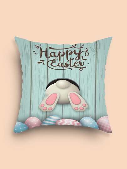 1 pieza Huevo de Pascua & con patrón de conejo Funda de cojín sin moderno de tela Funda decorativa para cojín para casa - Multicolor - Añade 1