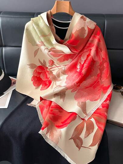 1 pieza Elegante bufanda de jacquard con estampado floral y de mariposa, chal cálido adecuado para salas con aire acondicionado, accesorio de moda para otoño/invierno