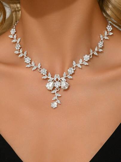 1 pieza Collar elegante con flecos florales y diamantes de imitación, adecuado para usar a diario y accesorios de boda/fiesta - Multicolor - Añade 1