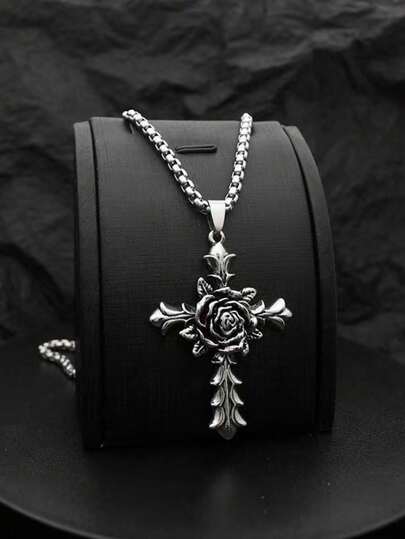 1 pieza Collar con colgante de estilo gótico, cruz y rosa, de diseño versátil y personalizado al estilo clásico europeo y americano, para hombres - cruz - Añade 5