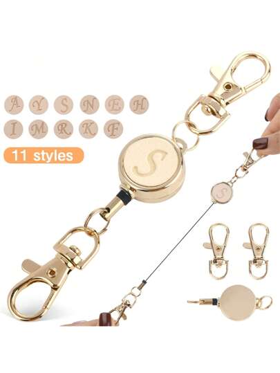1 pieza Broche ajustable con inicial chapado en oro - Cordón retráctil de uso múltiple para bolsos, tarjetas, llaves, práctico para uso diario, regalo personalizado - Albaricoque - Añade 11