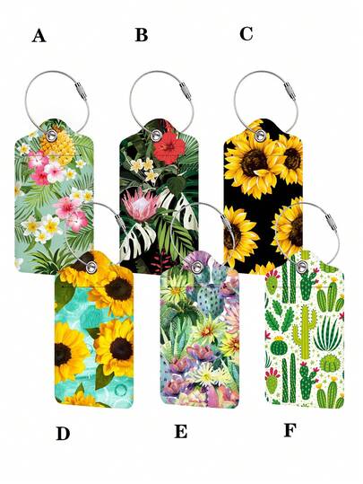 1 pieza Etiqueta de equipaje con patrón colorido de flores y plantas de moda, tarjetero de identificación para bolsa de viaje - Multicolor - Añade 6