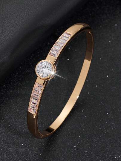 1 pieza Pulsera elegante minimalista, versátil para usar a diario, con circonita brillante en forma circular y rectangular, adecuada como regalo de boda/compromiso para hombres - SZ317 - Añade 5