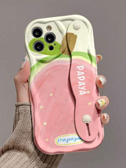 Llavero, Cordón 1 pieza Funda protectora de teléfono con estampado de papaya, gruesa y resistente a golpes, con soporte, compatible con Apple y Series - Multicolor - Añade 5
