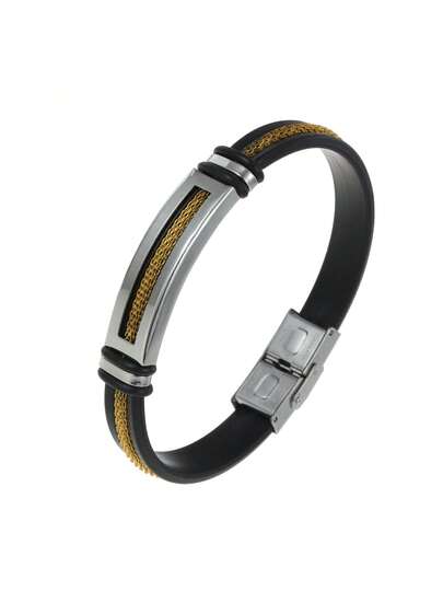 1 Pieza Pulsera Elegante De Acero Inoxidable Y Silicona Con Huecos, Adecuada Para Uso Diario De Hombres