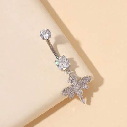 1 pieza Anillo de ombligo de titanio con diseño de libélula a la moda, apto para uso diario - Plateado - Añade 4