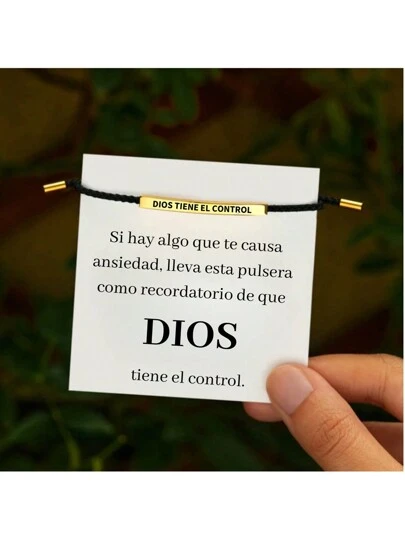 1 Pieza Pulsera De Tubo Curvado De Acero De Titanio Grabado De Moda, Pulsera Ajustable De Cadena De Letras Afortunadas Tejido A Mano Unisex Joya Regalo - Dorado - Añade 10
