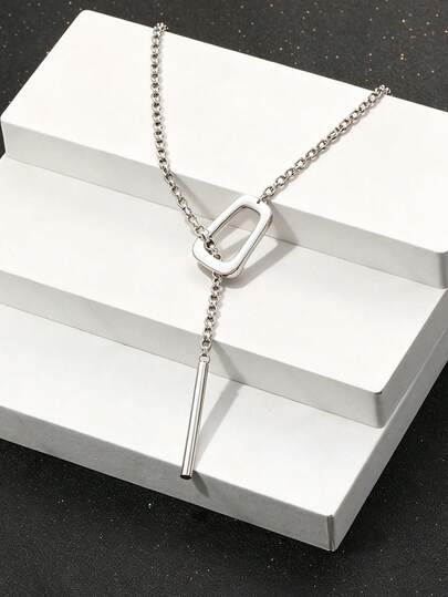 1 pieza Collar gargantilla de metal plateado grueso con cadena geométrica hueca cuadrada ajustable, anillo cuadrado exagerado abierto, cierre antideslizante, adecuado para uso diario, vacaciones y fiestas de los hombres