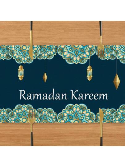 1 pieza Corredor de mesa rectangular de lino para festivales, decoración de mesa impresa en azul para cocina y comedor, adecuado para decoración de escenas de eventos tanto en interiores como exteriores - Azul - Añade 7