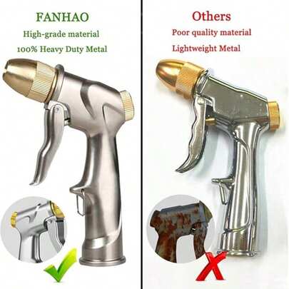 1 pieza Rociador de manguera de jardín, rociador de agua de mano de metal 100% de alta resistencia con 4 patrones de riego, adecuado para regar plantas y céspedes, lavar autos, patios y mascotas