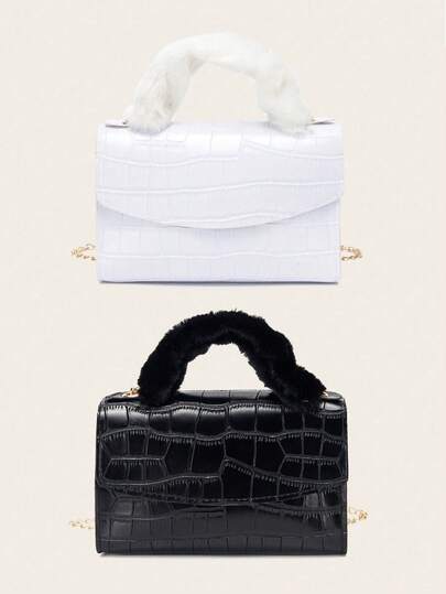 1 pieza Bolso de hombro con textura de cocodrilo de peluche para niñas, minimalista y de moda, accesorio ideal para ir de compras y citas - Multicolor - Añade 2