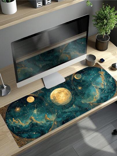 1 pieza Alfombrilla de ratón para juegos con luna dorada y goma verde oscura antideslizante para computadora de escritorio/portátil de oficina - Verde - Añade 1