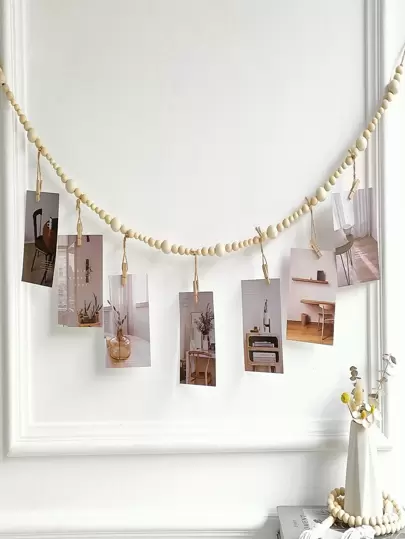 1 marco de fotos colgante con Clip, Clip de marco colgante de decoración de cuentas de madera Boho para decoración del hogar - Caqui - Añade 5