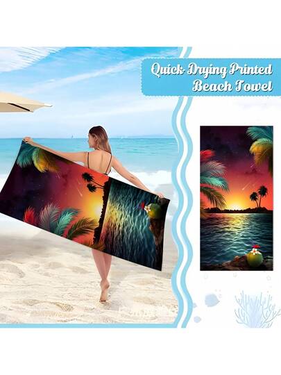 1 Pieza Toalla De Playa Con Patrón De Paisaje, Moderna Toalla De Baño De Microfibra Para Vacaciones, Camping, Natación, Baño O Regalo - Multicolor - Añade 5