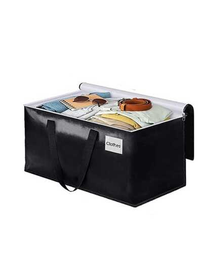 1 Pieza Bolsa De Almacenamiento De Ropa De Gran Capacidad Para Mudanzas, Organizador Plegable Con Cremallera Superior, Asa Duradera, Tejido Pe Ahorrador De Espacio - Negro - Añade 1